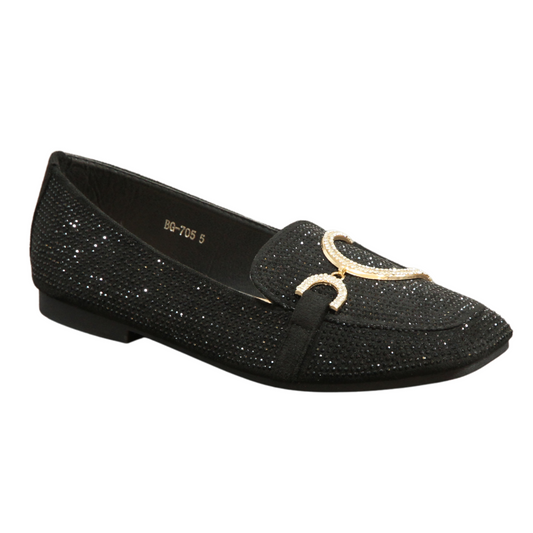 IVACHY Women's Flat Loafers with Double D Gold Motifs - Chic, Fashionable, and Shiny Shoes BG-705