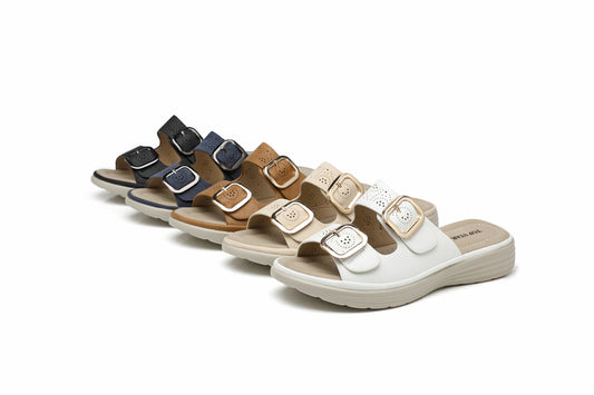 IVACHY Women’s Double Strap Slide Sandals Comfort Cushioned Mule Slippers with Buckle Open Toe Slip On Summer Shoes 9050