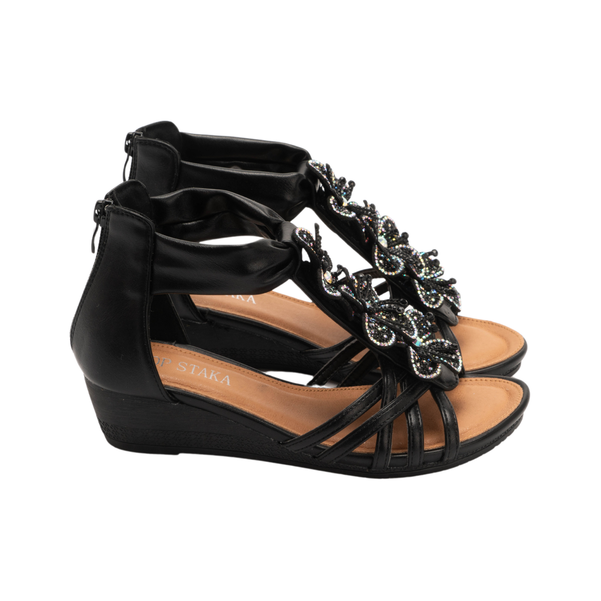 - Elevate your footwear collection with the IVACHY Embellished Strappy Wedge Sandals. Whether you're dressing up for a special occasion or adding a touch of elegance to your everyday look, these sandals are your go-to choice for chic, comfortable style.